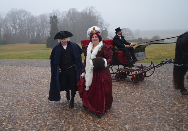 | Mr. and Mrs. Madison arrive at Montpelier in style. Photo courtesy the Montpelier Foundation. |