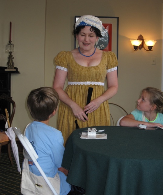 Dolley Madison helps some boys and girls discover the young ladies and gentlemen hidden within them. Above: Mrs. Madison gives a few pointers on